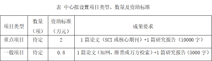根据中心年度经费和方向设置情况,2025年拟设置中心项目(申请项目数量、类型和资助标准根据申报情况定),项目周期为2025年3月至2026年3月,项目申请内容应符合中心的科学目标要求。具体项目设置及结题要求如下: